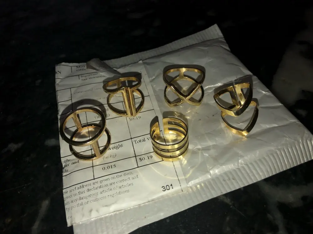 5 Pcs/ Set Classic Gold Colour V Chevron Rings Geometrical Irregular Ring Set