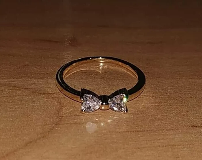 Crystal Rings Gold Color Finger Bow Ring Wedding Engagement Cubic Zirconia