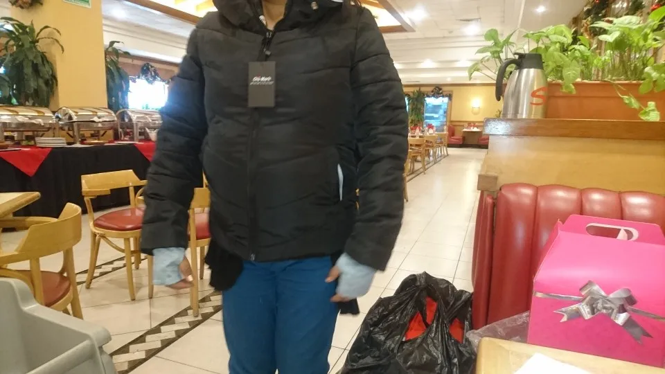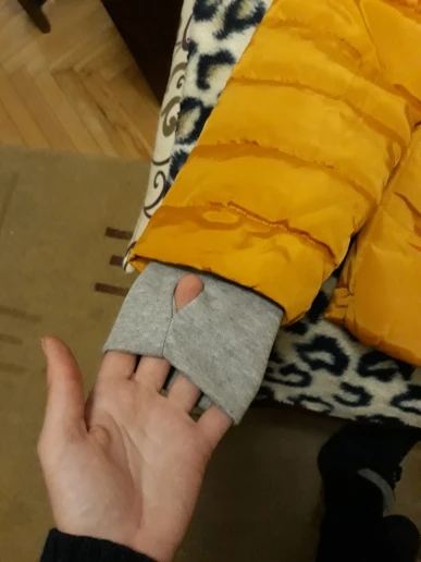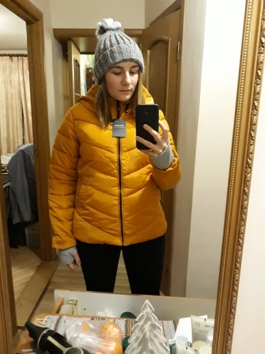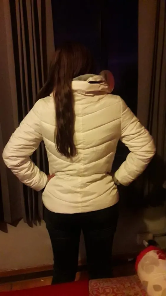 Size choose, based on feedback. Took the biggest XXXL and made the right decision. My weight 67 kg, Height 170 cm. If taken XXL, then it would be back to back. And a sweater medium thickness-in the time. Jacket though is thin, but surprisingly warm its thickness. IN general, very happy, unless the photo looks dull, and in fact it is brilliant. But thanks to this super-color is not so much. Of bugs-one of laces near the hood was not stub (photo shows), but it is also not much at all. Jacket come in a package, a little crumpled, but after 2 walks (including in the rain) all the wrinkles smoothed. Seller poklal scrunchy for free. Perhaps the most unpleasant of all is the delivery time. A Little more than two months. Thinking that will go to her Nov-early Dec, but probably will have to wait until spring.