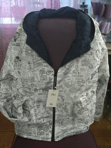 Gender: WomenItem Type: Outerwear & CoatsOuterwear Type: JacketsDecoration: Pattern,Zippers,PocketsSleeve Style: RegularType: Wide-waistedHooded: YesThickness: StandardMaterial: PolyesterSleeve Length(cm): FullCollar: V-NeckClosure Type: ZipperClothing Length: RegularPattern Type: CartoonStyle: Casual