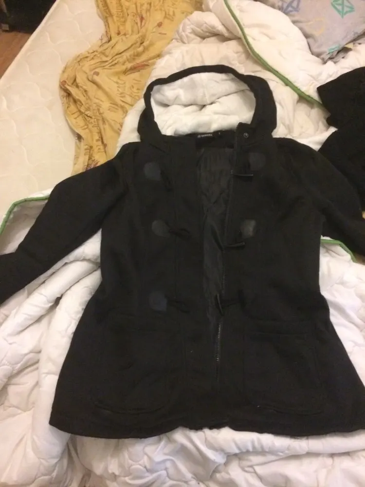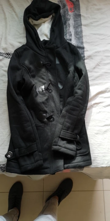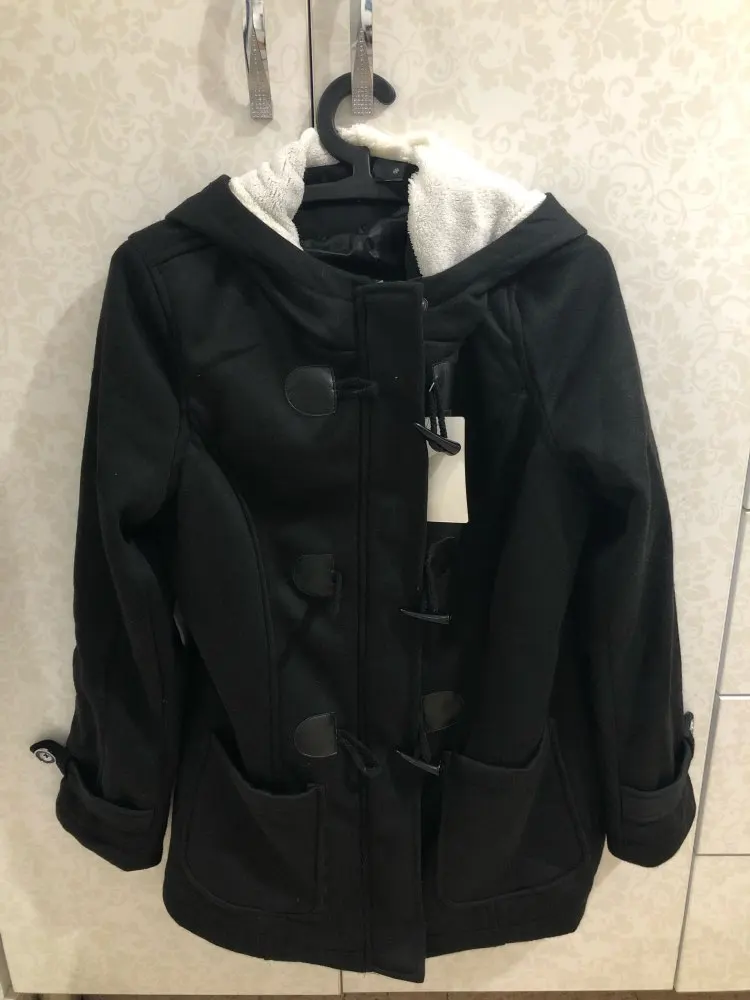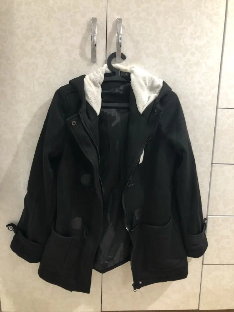 Women Causal Coat Overcoat Hooded Coat Zipper Horn Button