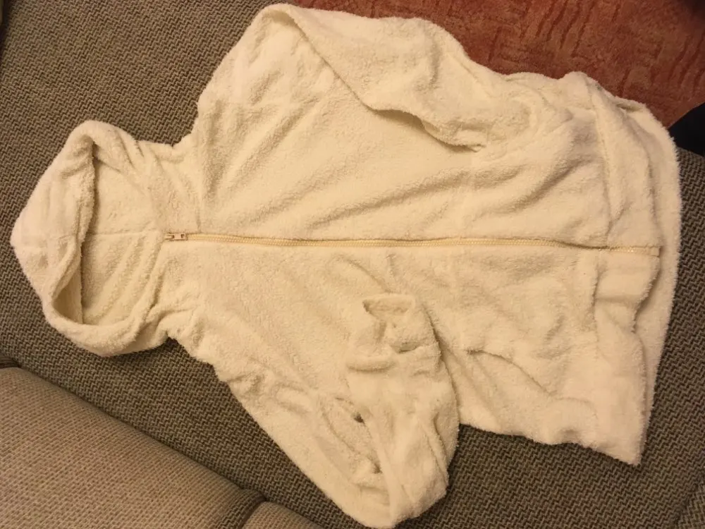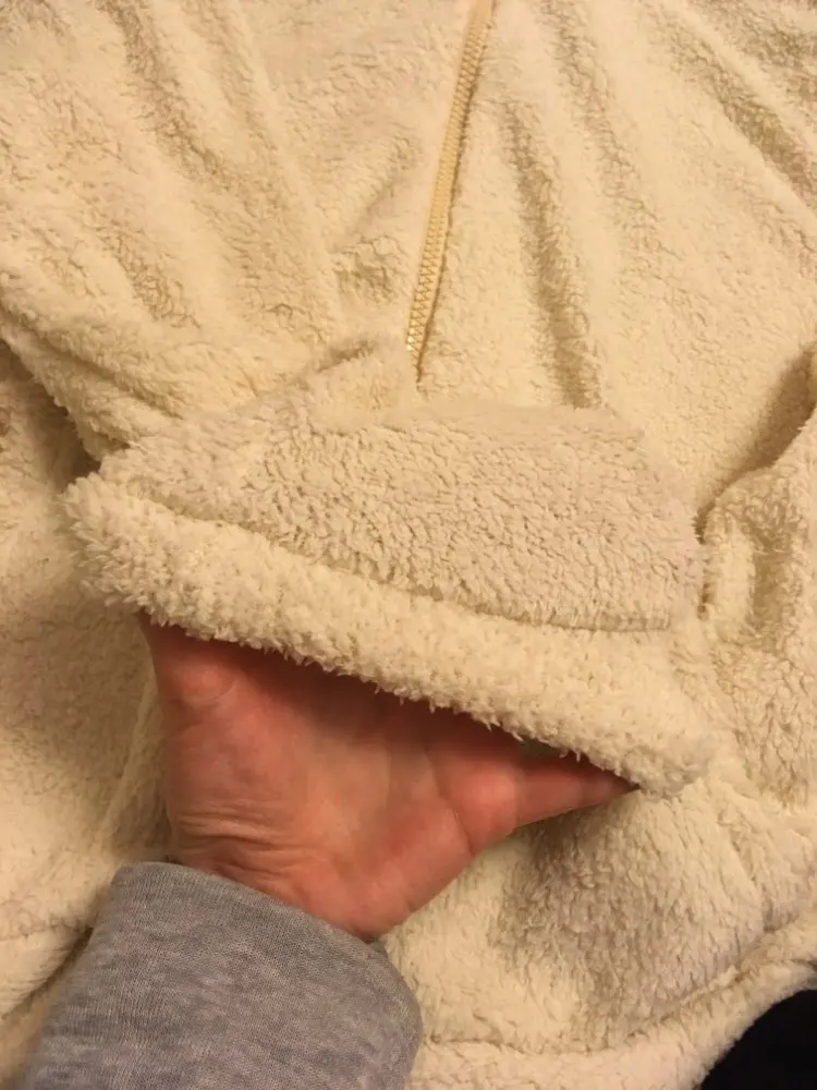Excellent, soft, light, warm sweatshirt. Наткано stretch wide. The photo looks more thick and fluffy, and life fabric is thin. But it makes the hoodie is very compact!